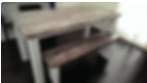 White/grey distressed farm table + snow white legs. This technique really allows the wood grain to come through in the layers. When finished in high gloss it's a contemporary look